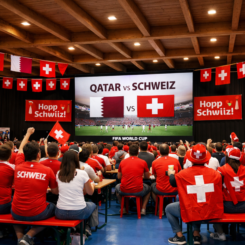 Auf Grossleinwand zeigen wir Ihnen das 1. Gruppenspiel der Schweiz Nationalmannschaft gegen Katar.